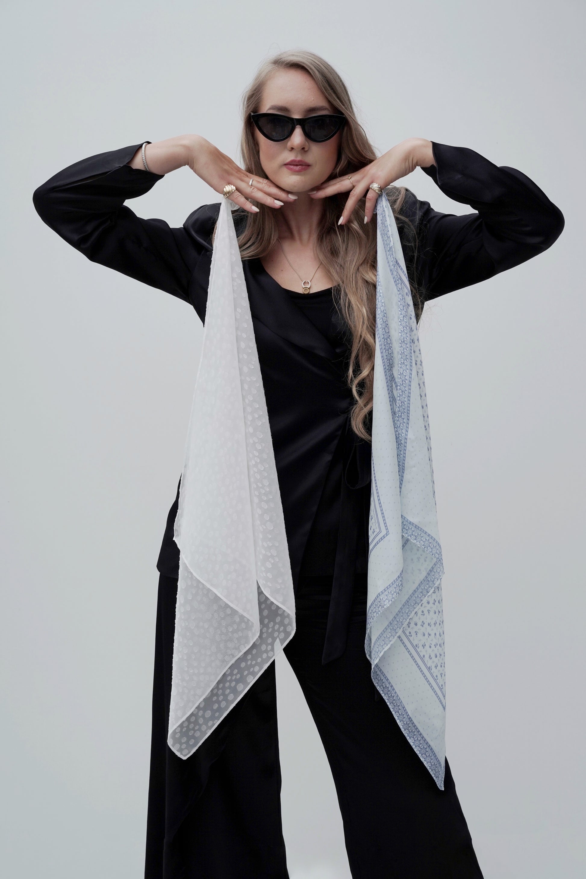 Signature TouchEin Seidentuch als Halsschmuck, Haarband oder am Taschengriff gebunden – ein zeitloses Detail, das jeden Look veredelt.